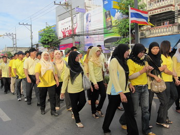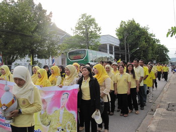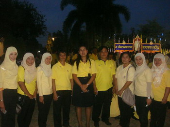นางสาววิภานันท์ พุทธนุกูล ผอ.กศน.อำเภอควนโดน และบุคลากร อำเภอควนโดน เดินเทิดพระเกียรติและร่วมพิธีจุดเทียนชัยถวายพระพรชัยและถวายราชสดุดีเฉลิมพระเกียรติพระบาทสมเด็จพระเจ้าอยู่หัว เนื่องในโอกาสมหามงคลเฉลิมพระชนมพรรษา 5 ธันวาคม 2555 เวลา 16.00 - 19.19 น. ณ สนามหน้าศาลากลางจังหวัดสตูล