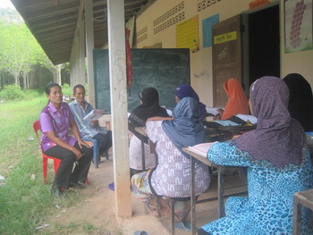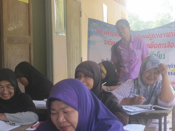 นางสาววิภานันท์ พุทธนุกูล ผอ.กศน.อำเภอควนโดน เป็นประธานเปิดกลุ่มโครงการส่งเสริมภาษาพาสันติสุข ( ภาษามาลายูเพื่อการสื่อสาร) ณ โรงเรียนตาดีกา หมู่ที่ 2 บ้านกุบังปะโหลด ตำบลควนสตอ อำเภอควนโดน จังหวัดสตูล ในวันที่ 14 มีนาคม 2556
