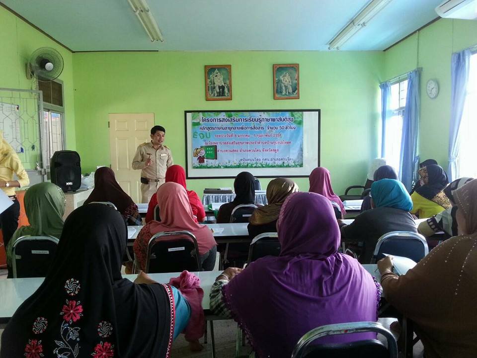 นางสาววิภานันท์ พุทธนุกูล ผอ.กศน.อำเภอควนโดน มอบหมายให้ นายทวีศักดิ์ แซ่เจน ข้าราชการครู กศน.อำเภอ ควนโดนปฎิบัติราชการแทน โดยเปิดกิจกรรมโครงการส่งเสริมภาษาพาสันติสุข ภาษามาลายูเพื่อการสื่อสาร ณ โรงพยาบาลส่งเสริมสุขภาพประจำตำบลควนสตอ ในวันที่12 มกราคม 2558 ซึ่งมีผู้เข้ารับการอบรมจากตำบลควนสตอ จำนวน26 คน และตำบลย่านซื่อ จำนวน 18 คน รวมทั้งหมดจำนวน 44 คน