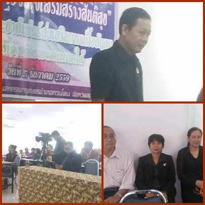 นางสาววิภานันท์ พุทธนุกูล ผอ.กศน.อำเภอควนโดน มอบหมายให้ นางเนาวรัตน์ ศรีหมั่น ข้าราชการครู เข้าร่วมเป็นเกียรติในพิธีเปิด การเสวนา "ประชารัฐร่วมใจ เสริมสร้างสันติสุข "ในวันอังคารที่ 27 ธันวาคม 2559 เวลา 09.00-16.30 น. ณ ห้องประชุมสำนักงานสหกรณ์การเกษตรอำเภอควนโดน โดยมีนายภัทรพนธ์ รัตนพิเชฎฐชัย เป็นประธานในพิธีเปิด