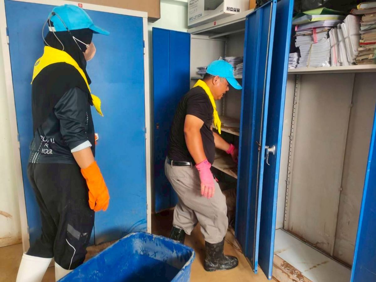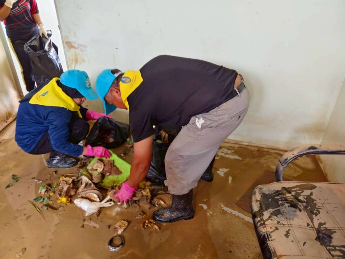บรรณารักษ์ห้องสมุดประชาชนอำเภอควนโดน ร่วมทำกิจกรรมฟื้นฟู ช่วยเหลือ ผู้ประสบอุทกภัย