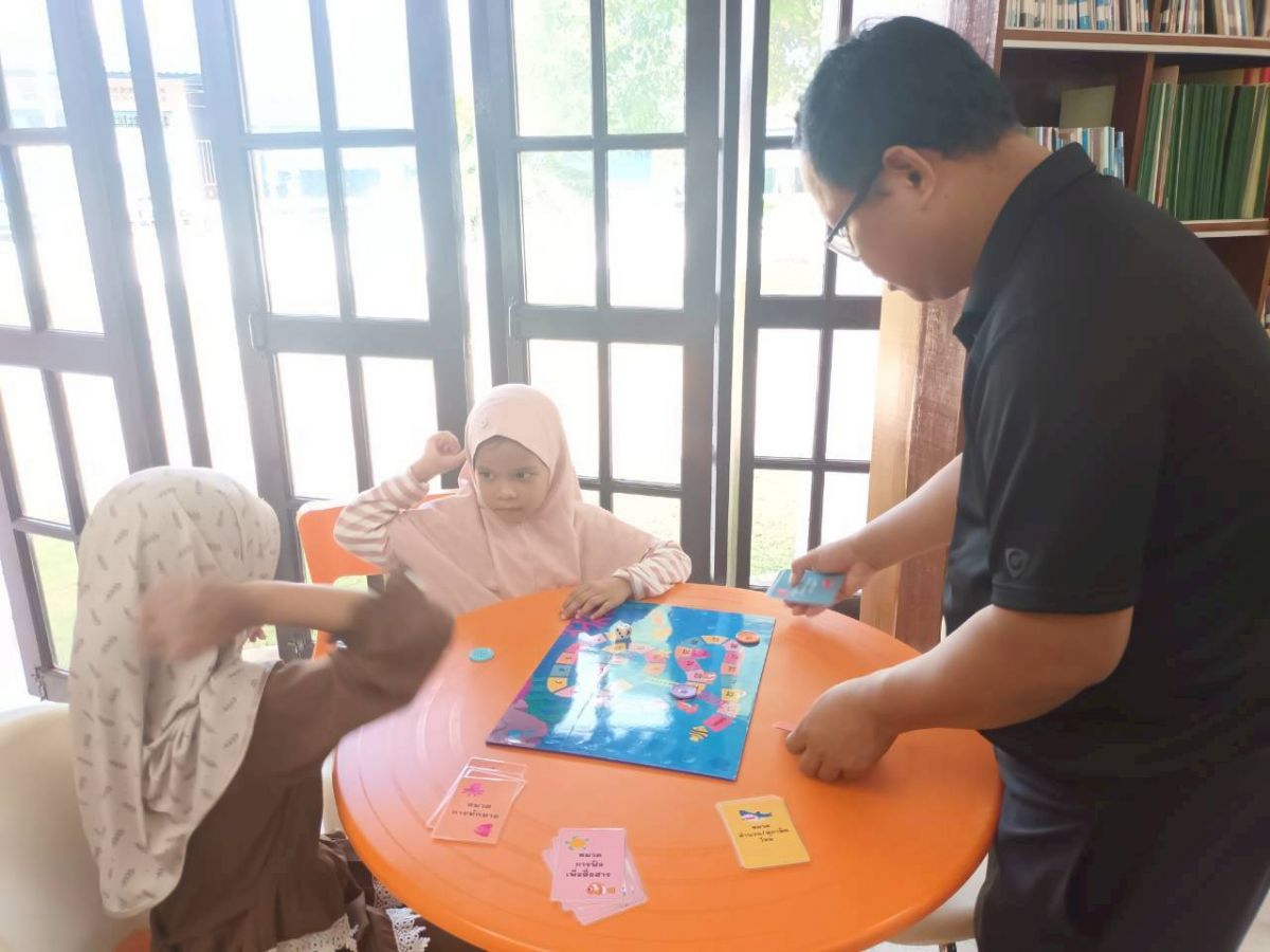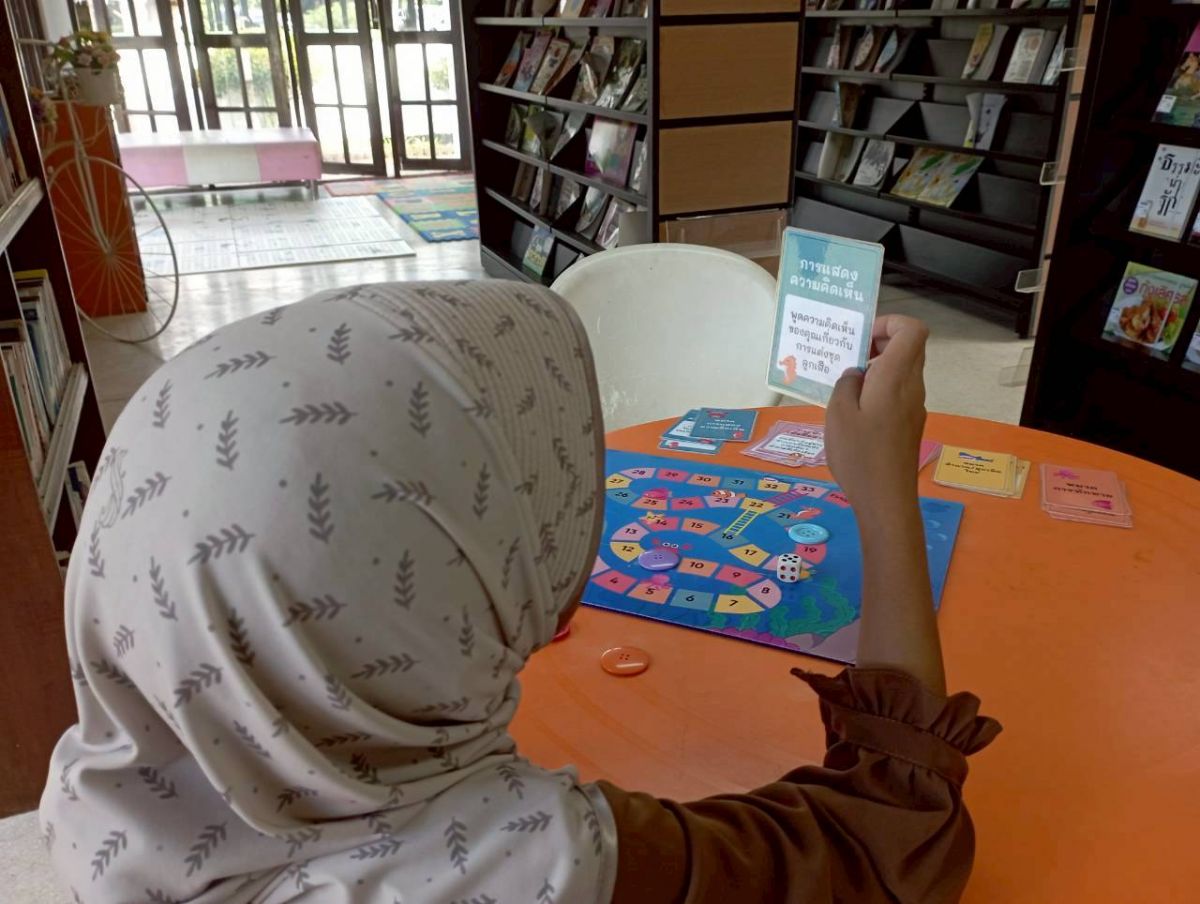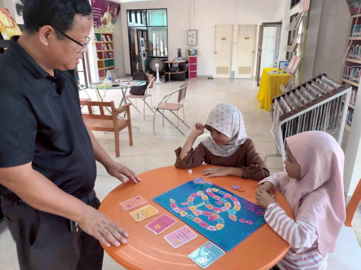 ห้องสมุดประชาชนอำเภอควนโดน จัดกิจกรรม นวัตกรรมส่งเสริมการอ่านและการเรียนรู้ เกมบันไดงูนักสื่อสาร