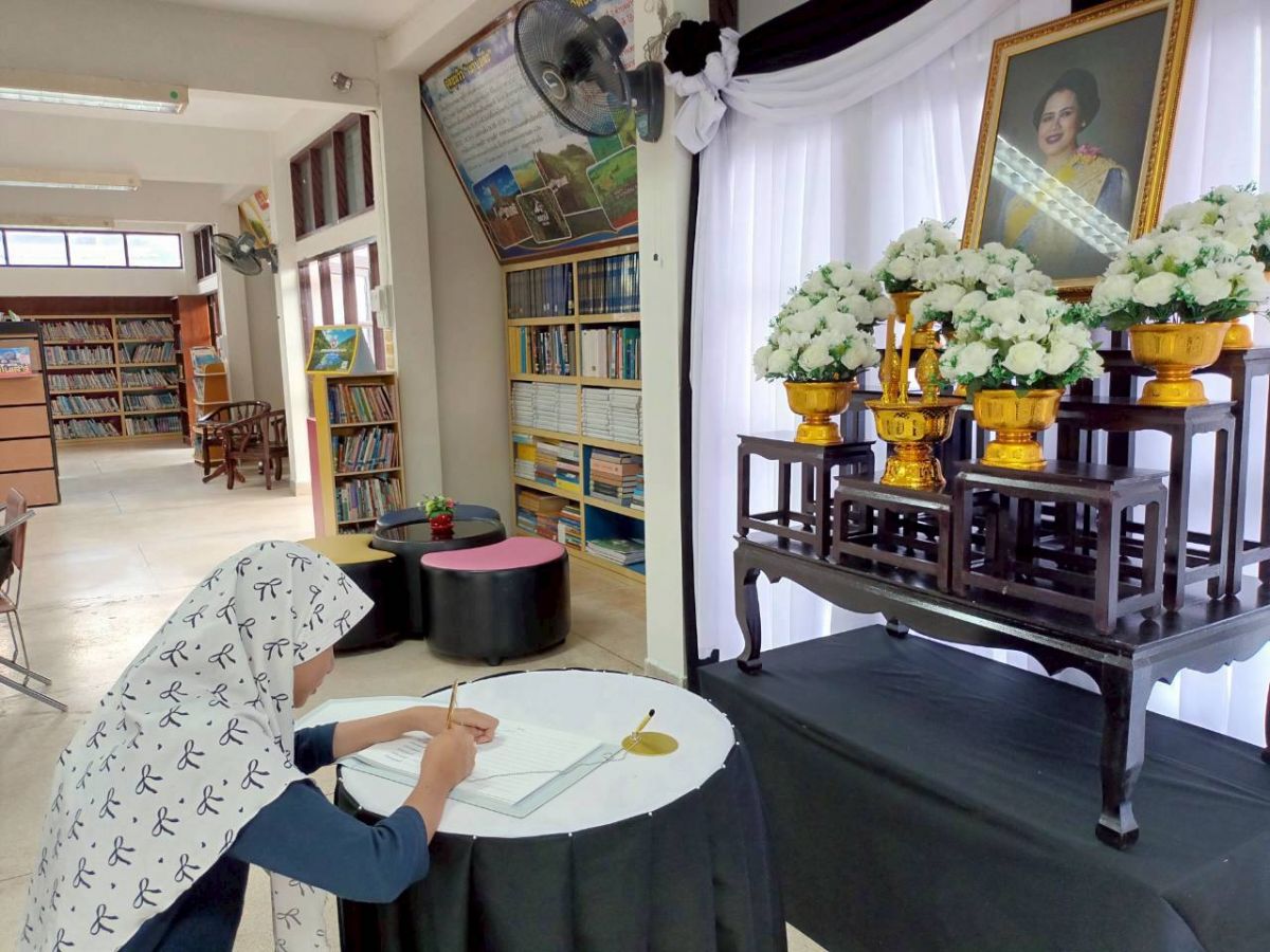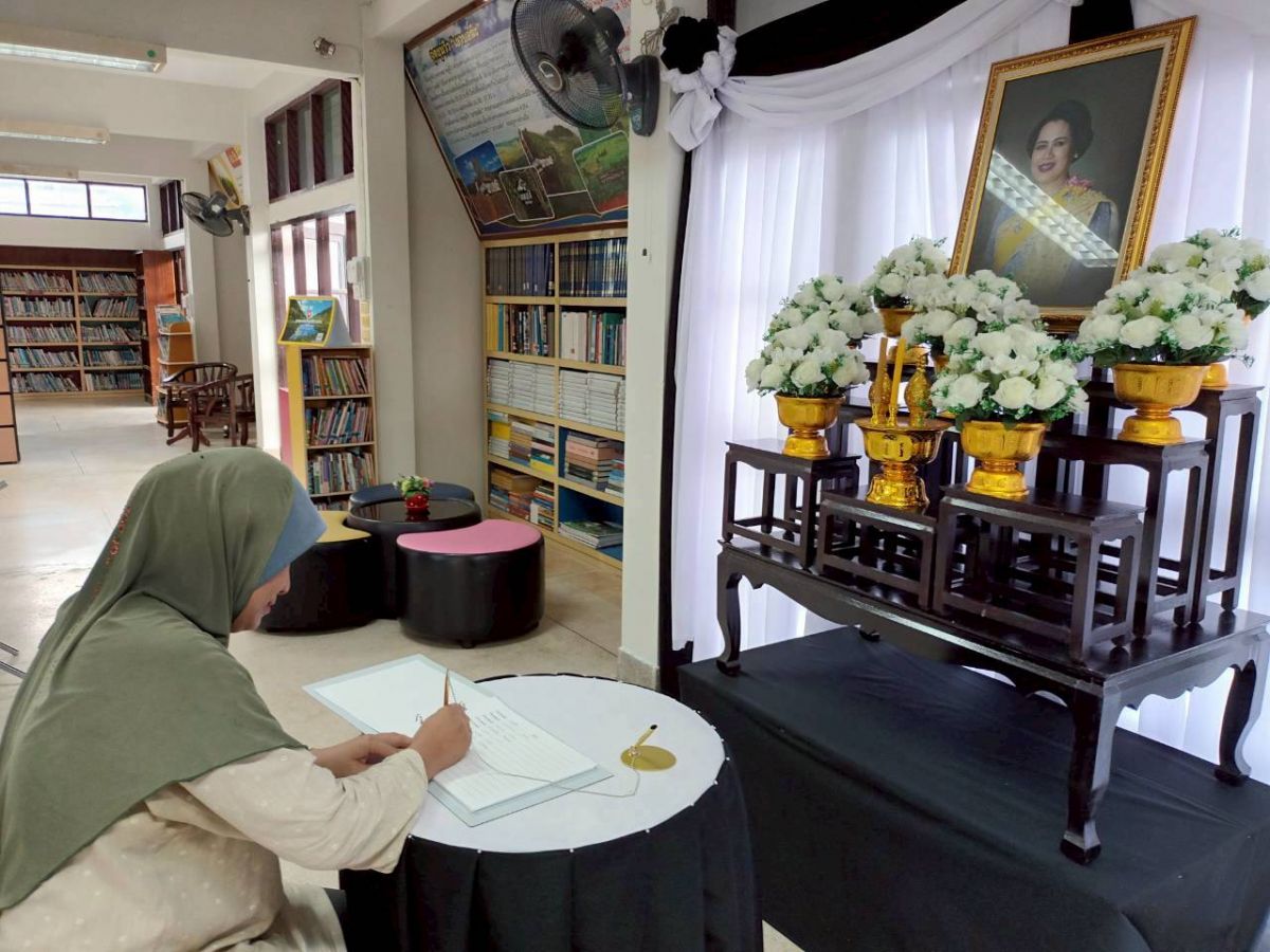 ห้องสมุดประชาชนอำเภอควนโดน จัดกิจกรรมลงนามถวายความอาลัย สมเด็จพระนางเจ้าสิริกิติ์ พระบรมราชินีนาถ พระบรมราชชนนีพันปีหลวง