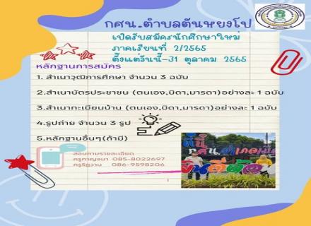 กศน.ตำบลควนขัน รับสมัครนักศึกษาใหม่และรับลงทะเบียนเรียน ภาคเรียนที่ 2 ปีการศึกษา 2565