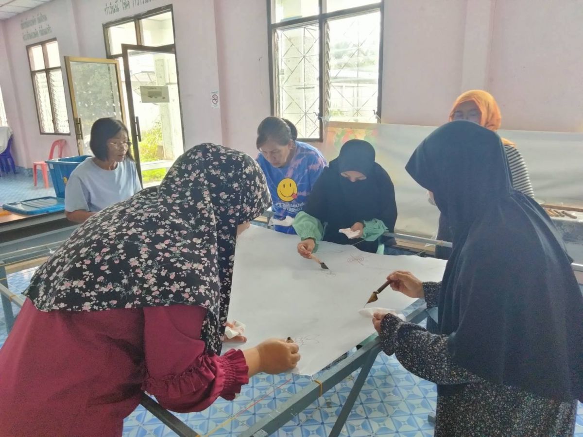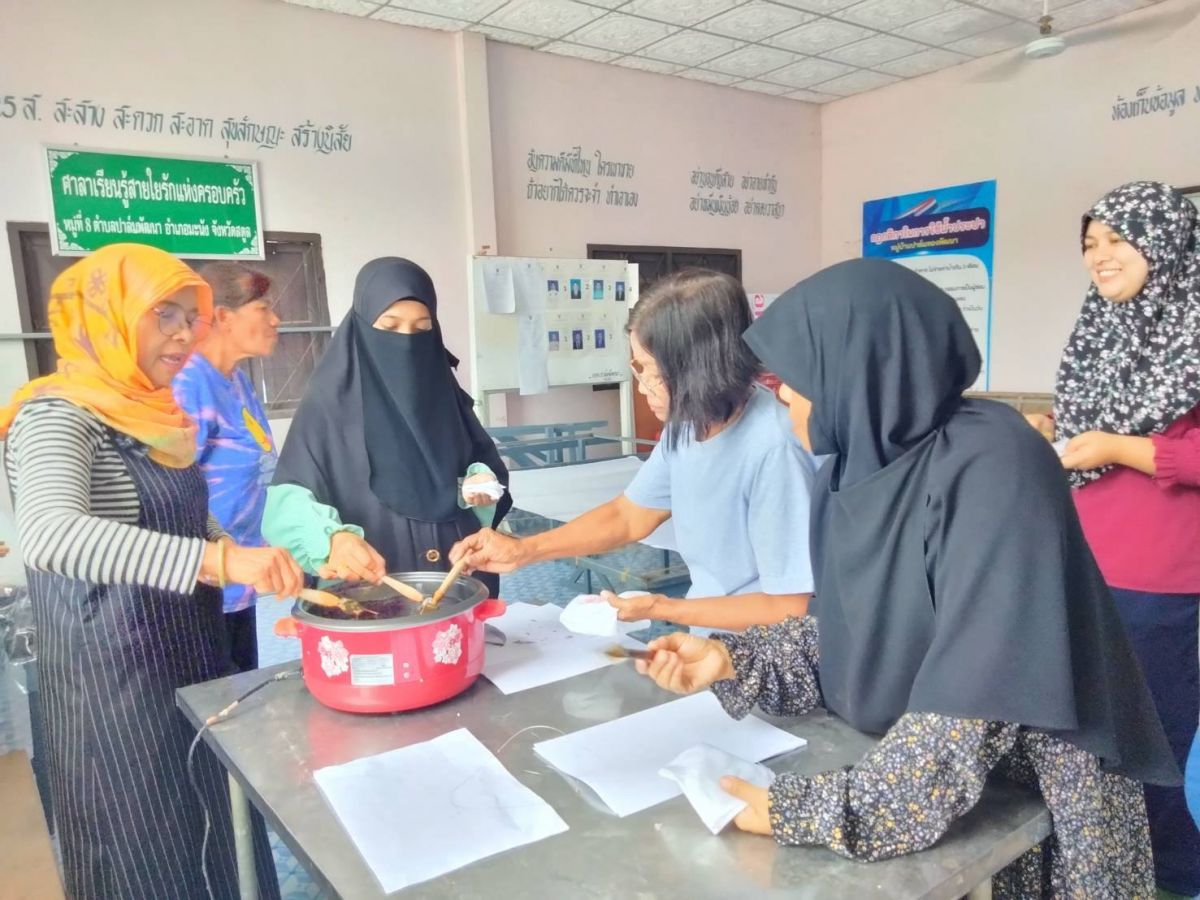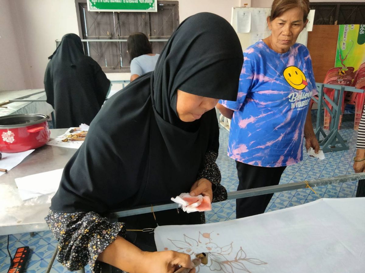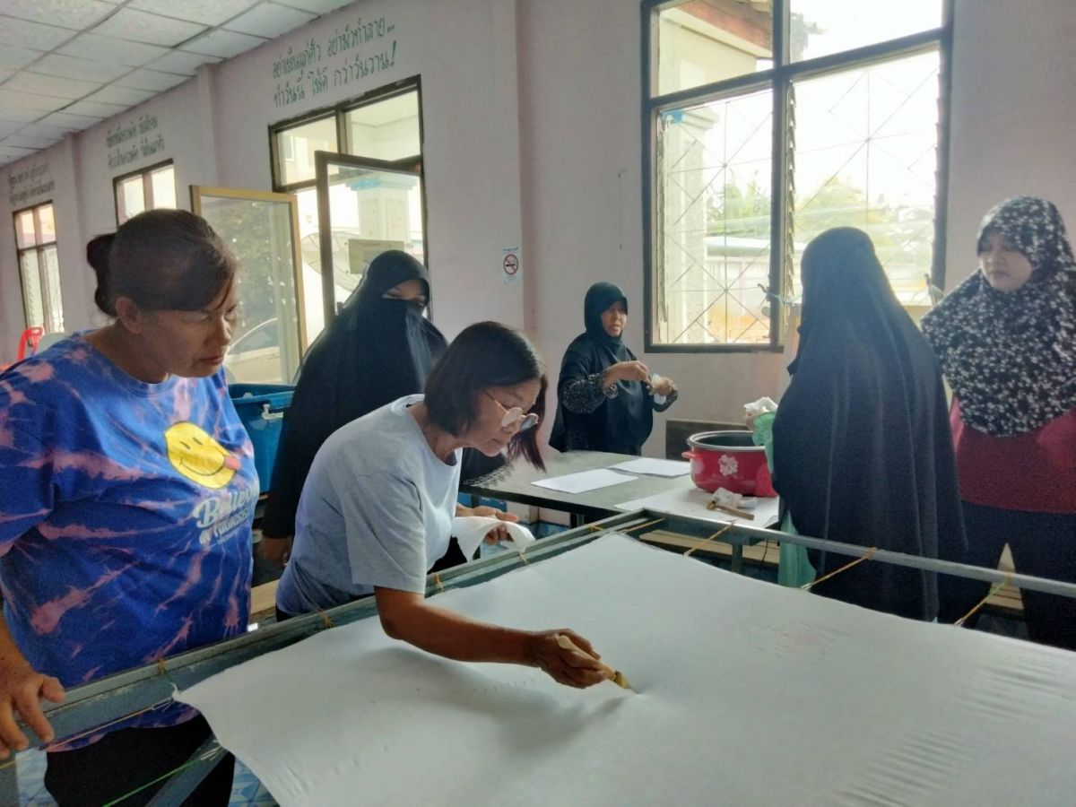 ศูนย์ส่งเสริมการเรียนรู้ระดับตำบลปาล์มพัฒนา ติดตามโครงการศูนย์ฝึกอาชีพชุมชน หลักสูตรการทำผ้าบาติก