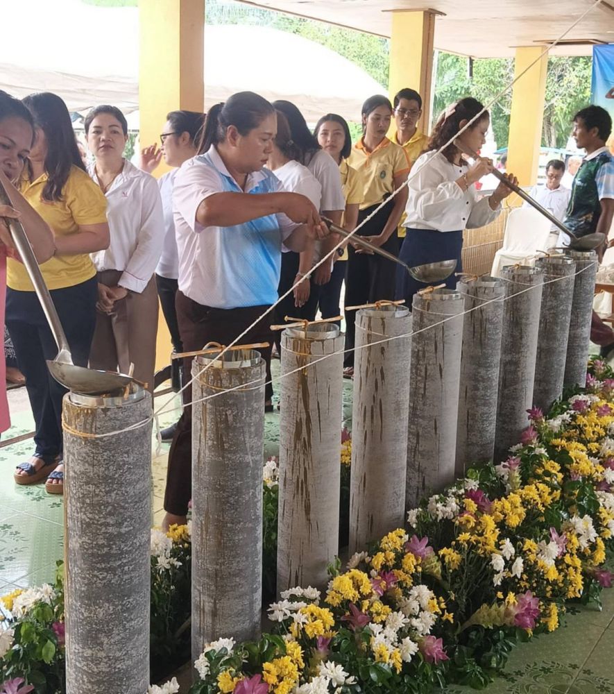 นายมรกต กันหนองผือ ผู้อำนวยการสถานศึกษาศูนย์ส่งเสริมการเรียนรู้ระดับอำเภอละงู รักษาการในตำแหน่งผู้อำนวยการ สกร.ระดับอำเภอมะนัง มอบหมายให้ด้วยนางนฤมล ช่วยดำ ครูศูนย์การเรียนรู้ ร่วมโครงการหล่อเทียนพรรษา ประจำปีงบประมาณ พ.ศ.2568 พิธีหล่อเทียนพรรษา