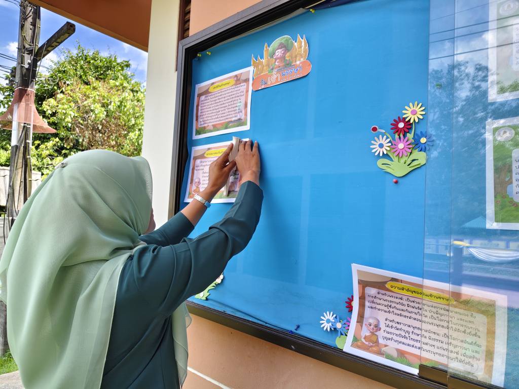 นายบุญนำ หมีนยะลา ผู้อำนวยการสถานศึกษาสกร.ระดับอำเภอมะนัง มอบหมายให้นางสาวนริสรา พงค์หลง บรรณารักษ์ จัดบอร์ดส่งเสริมการอ่านและการเรียนรู้ วันสำคัญของพระพุทธศาสนา วันอาสาฬหบูชาและวันเข้าพรรษา