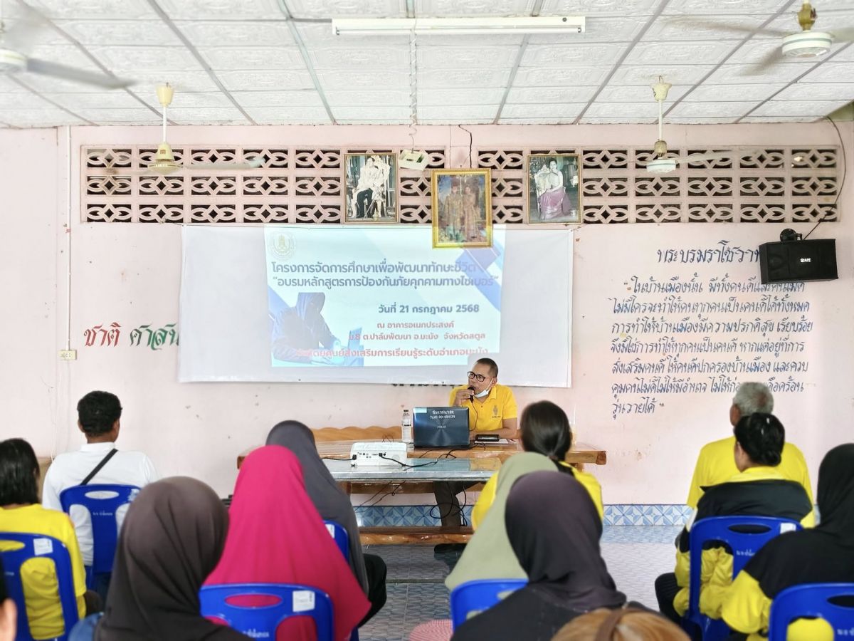 ศูนย์ส่งเสริมการเรียนรู้ระดับอำเภอมะนัง จัดโครงการจัดการศึกษาเพื่อพัฒนาทักษะชีวิต อบรมหลักสูตรการป้องกันภัยคุกครามทางไซเบอร์