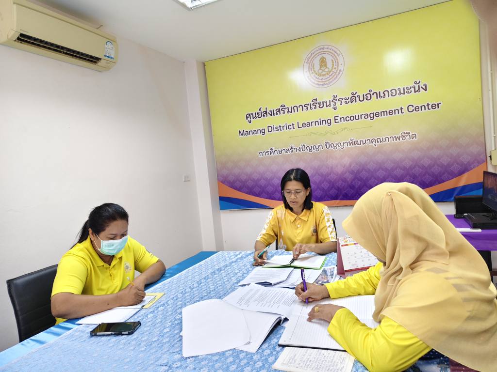 นายบุญนำ หมีนยะลา ผู้อำนวยการสถานศึกษา สกร.ระดับอำเภอมะนัง มอบหมายให้นางสาวจตุพร ทหารไทย ครูชำนาญการ ประชุมบุคลากรประจำสัปดาห์ เพื่อติดตามผลการดำเนินงานและวางแผนการดำเนินงานในไตรมาสที่ 4 ให้เป็นไปตามนโยบายกรมส่งเสริมการเรียนรู้ต่อไป