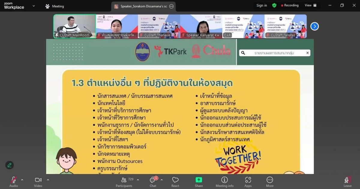 นายบุญนำ หมีนยะลา ผู้อำนวยการศูนย์ส่งเสริมการเรียนรู้ระดับอำเภอมะนัง มอบหมายให้นางสาวนริสรา พงค์หลง บรรณารักษ์ห้องสมุดประชาชนอำเภอมะนัง เข้าร่วมการสัมมนา “การจัดทำมาตรฐานวิชาชีพและคุณวุฒิวิชาชีพ สาขาบรรณารักษ์ ครั้งที่ 2” ในรูปแบบออนไลน์ผ่าน Zoom Meeting จัดโดยสำนักงานวิทยากร จุฬาลงกรณ์มหาวิทยาลัย ร่วมกับสมาคมห้องสมุดแห่งประเทศไทยฯ และ TK Park