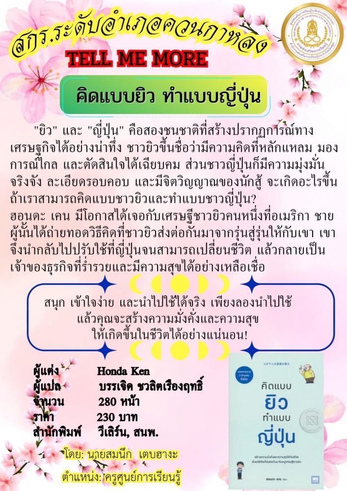 นายอาดำ ลิงาลาห์ ผู้อำนวยการศูนย์ส่งเสริมการเรียนรู้ระดับอำเภอท่าแพ รักษาการในตำแหน่งผู้อำนวยการศูนย์ส่งเสริมการเรียนรู้ระดับอำเภอควนกาหลง มอบหมายให้ งานจัดการเรียนรู้ตลอดชีวิต ดำเนินการจัดกิจกรรม ส่งเสริมการวิเคราะห์ และการอ่านอย่างเป็นกระบวนการ โดยผู้บริหารและครูเป็นต้นแบบ ภายใต้กิจกรรม ''''Tell me more" โดยกำหนดให้บุคลากรทางการศึกษา อ่านหนังสือตามความสนใจ เพื่อส่งเสริมให้ครูและบุคลากรทางการศึกษา มีทักษะในการแสวงหาความรู้ เพื่อนำไปเป็นแบบอย่างแก่ผู้เรียน "อ่านหนังสือตามความสนใจ อย่างน้อยเดือนละ 1 เล่ม และสรุปเนื้อหาที่อ่านโดยทำเป็นบรรณานิทัศน์"ณ ห้องสมุดประชาชนอำเภอควนกาหลง จังหวัดสตูล