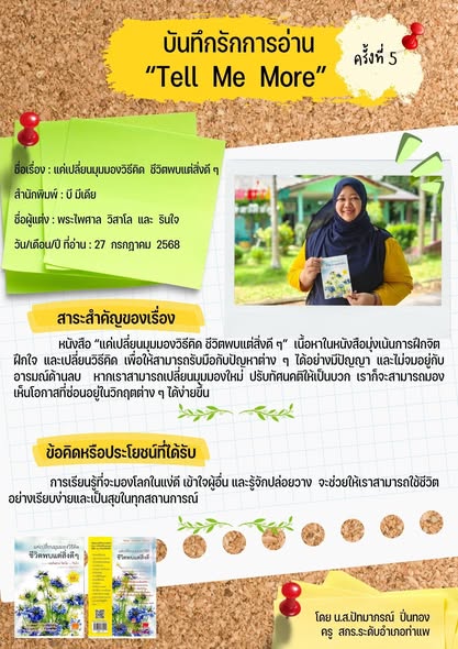 นายอาดำ ลิงาลาห์ ผู้อำนวยการสถานศึกษา ศูนย์ส่งเสริมการเรียนรู้ระดับอำเภอท่าแพ มอบหมายให้บุคลากร สกร.ระดับอำเภอท่าแพ จัดกิจกรรมส่งเสริมการอ่าน''Tell me more"เพื่อตอบรับนโยบายจุดเน้นการดำเนินงานกรมส่งเสริมการเรียนรู้ ประจำปีงบประมาณ พ.ศ. 2568 ส่งเสริมการคิดวิเคราะห์ และการอ่านอย่างเป็นกระบวนการ โดยผู้บริหารและครูต้องเป็นต้นแบบ ตามข้อสั่งการและแนวปฏิบัติของรัฐมนตรีว่าการกระทรวงศึกษาธิการ (พล.ต.อ.เพิ่มพูน ชิดชอบ) ณ ห้องสมุดประชาชนอำเภอท่าแพ อำเภอท่าแพ จังหวัดสตูล