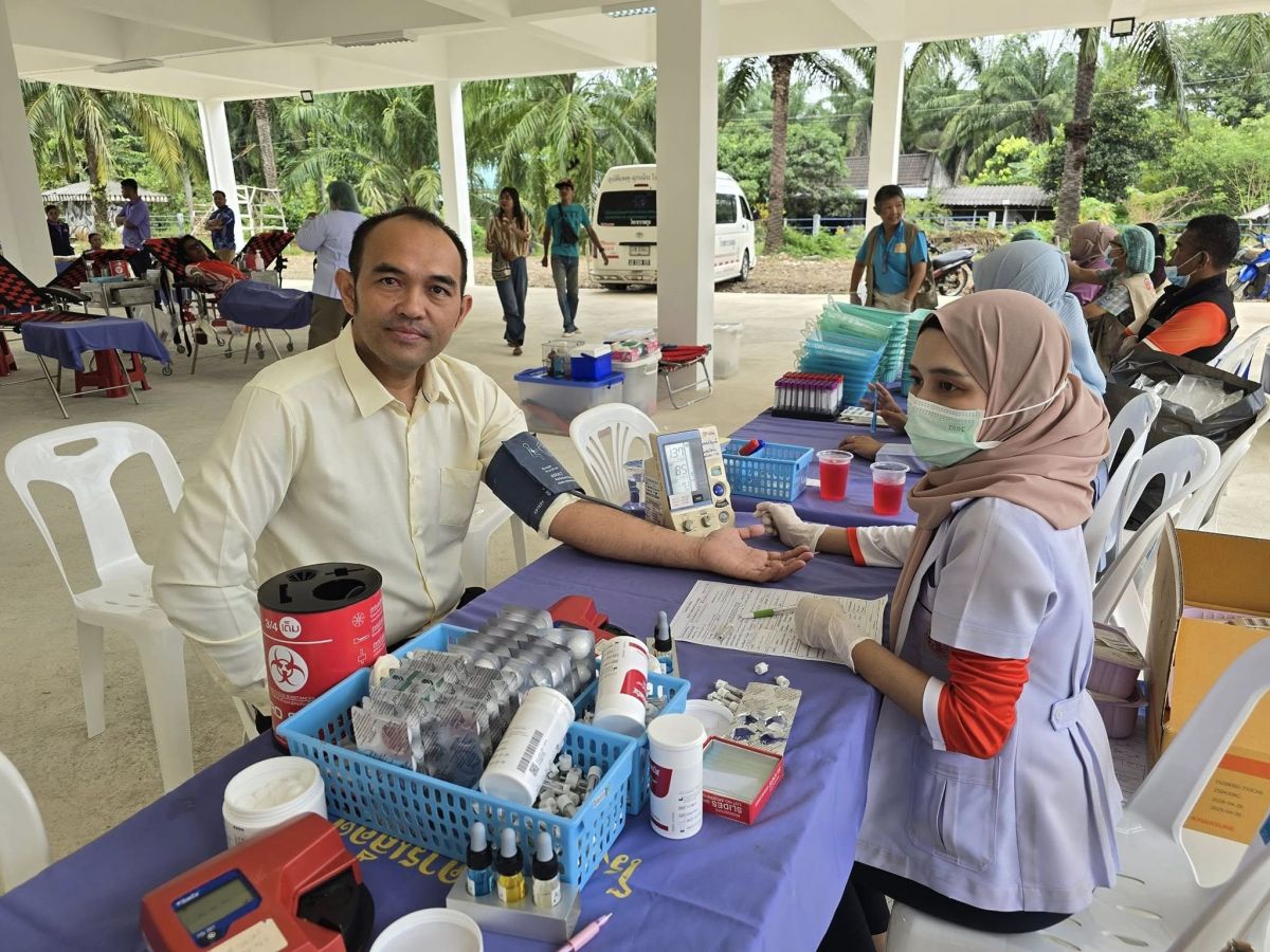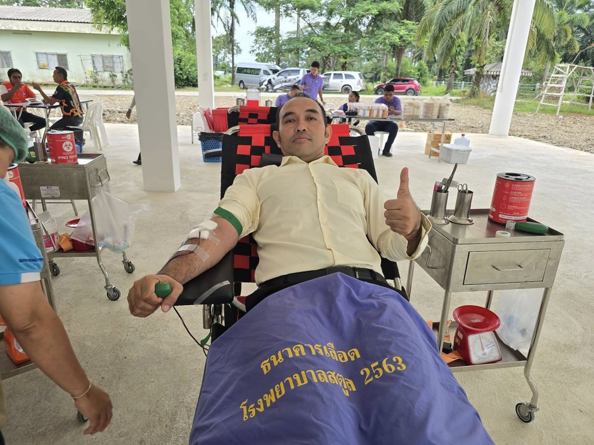 นายบุญนำ หมีนยะลา ผู้อำนวยการสถานศึกษาศูนย์ส่งเสริมการเรียนรู้ระดับอำเภอมะนัง ร่วมบริจาคโลหิต เพื่อจัดเตรียมโลหิตสำรองในการให้ความช่วยเหลือผู้ป่วยในพื้นที่จังหวัดสตูลให้เพียงพอกับความต้องการ