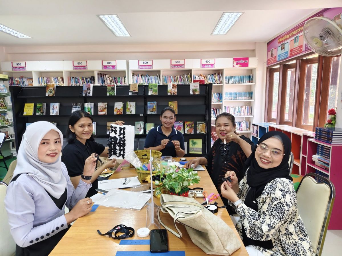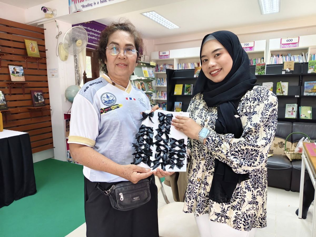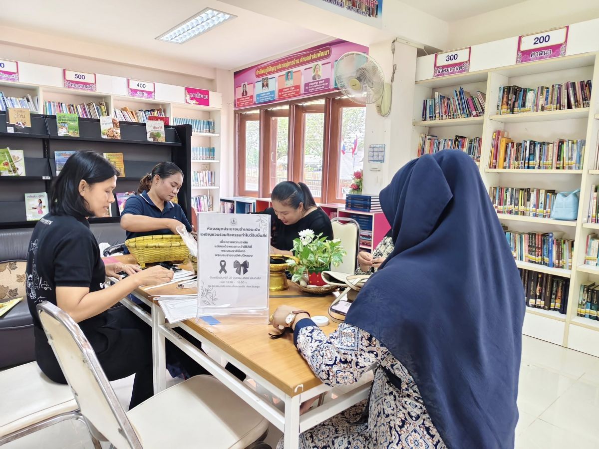ห้องสมุดประชาชนอำเภอมะนัง ดำเนินการจัดทำเข็มกลัดโบว์สีดำเพื่อถวายความอาลัยแด่สมเด็จพระนางเจ้าสิริกิติ์ พระบรมราชินีนาถ พระบรมราชิชนนีพันปีหลวง