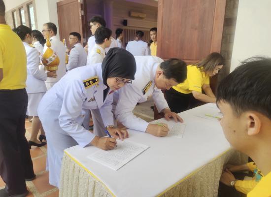 ศกร.ระดับตำบลบ้านควน ร่วมพิธีถวายเครื่องราชสักการะ วางพานพุ่ม และจุดเทียนถวายพระพรชัยมงคล เนื่องในวันเฉลิมพระชนมพรรษา พระบาทสมเด็จพระเจ้าอยู่หัว