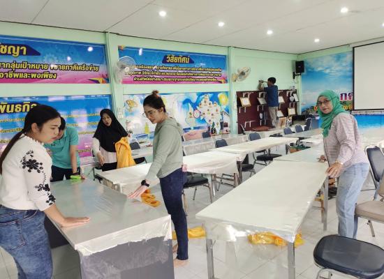 ศกร.ระดับตำบลบ้านควน ทำความสะอาดและจัดจับจีบโต๊ะห้องประชุม สรก.ระดับอำเภอเมืองสตูล