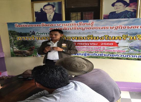 ศูนย์ส่งเสริมการเรียนรู้ระดับอำเภอควนกาหลง จัดโครงการการจัดกระบวนการเรียนรู้ตามหลักปรัชญาของเศรษฐกิจพอเพียงกิจกรรมการทำเศรษฐกิจพอเพียงในครัวเรือน
