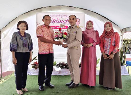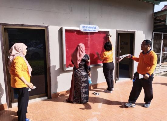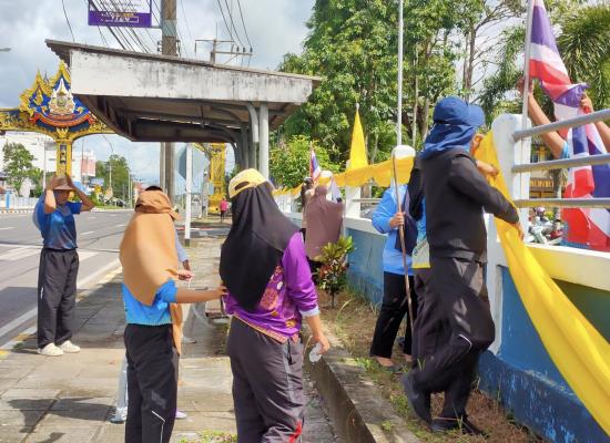 สกร.ระดับอำเภอท่าแพ ร่วมประดับผ้าระบายสีเหลืองร่วมกับ ผ้าระบายสีขาว บริเวณรั้วสถานศึกษา