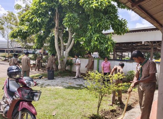 สกร.ระดับอำเภอควนโดน นำนักศึกษาร่วมกิจกรรมบำเพ็ญประโยชน์ เนื่องในวันคล้ายวันสถาปนาคณะลูกเสือแห่งชาติ ประจำปี 2568