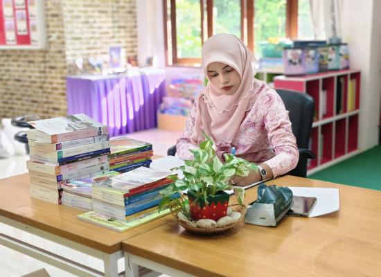 บรรณารักษ์ ห้องสมุดประชาชนอำเภอมะนัง ดำเนินงานเทคนิคของห้องสมุด