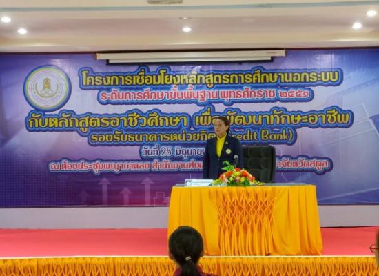 ศูนย์ส่งเสริมการเรียนรู้ระดับอำเภอละงู เข้าร่วมโครงการเชื่อมโยงหลักสูตรการศึกษานอกระบบระดับการศึกษาขั้นพื้นฐาน พ.ศ. 2551 กับหลักสูตรอาชีวศึกษา เพื่อพัฒนาทักษะอาชีพ รองรับระบบธนาคารหน่วยกิต (Credit Bank) |