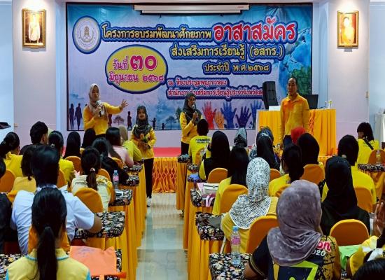 ศกร.ระดับตำบลตันหยงโป นำผู้เรียนเข้าร่วมโครงการอบรมพัฒนาศักยภาพอาสาสมัครส่งเสริมการเรียนรู้ (อสกร)