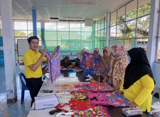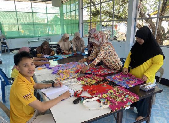 ศกร.ระดับตำบลตำมะลัง เยี่ยมโครงการศูนย์ฝึกอาชีพชุมชน รูปแบบชั้นเรียนวิชาชีพ (31 ชั่วโมงขึ้นไป) หลักสูตร Bagshopping Batik