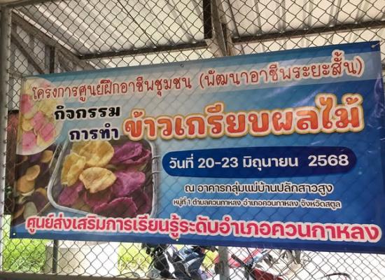 ศูนย์ส่งเสริมการเรียนรู้ระดับ อำเภอควนกาหลง จัดโครงการศูนย์ฝึกอาชีพชุมชน(พัฒนาอาชีพระยะสั้น) กิจกรรมการทำข้าวเกรียบผลไม้