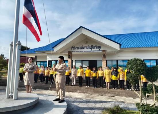 ศูนย์ส่งเสริมการเรียนรู้ระดับอำเภอควนกาหลง เข้าร่วมกิจกรรมปลูกฝังค่านิยมองค์กร ผ่านกิจกรรมเคารพธงชาติ และจิตสำนึกแห่งความกตัญญูต่อชาติ ศาสน์ กษัตริย์