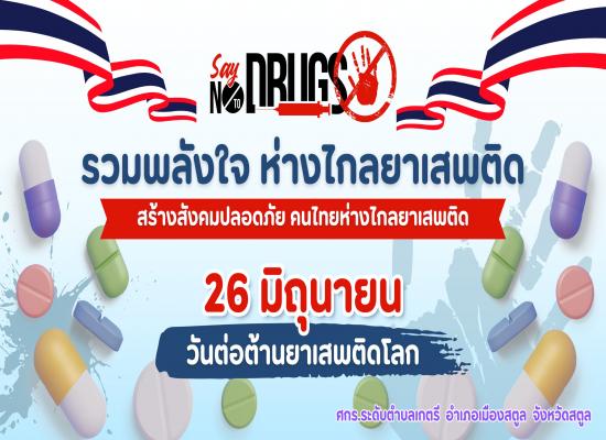 วันที่ ๒๖ มิถุนายน วันต่อต้านยาเสพติดโลก ขอให้สถานศึกษาจัดกิจกรรมรณรงค์ประชาสัมพันธ์เพื่องสร้างการรับรู้เนื่องในวันยาเสพติดโลก