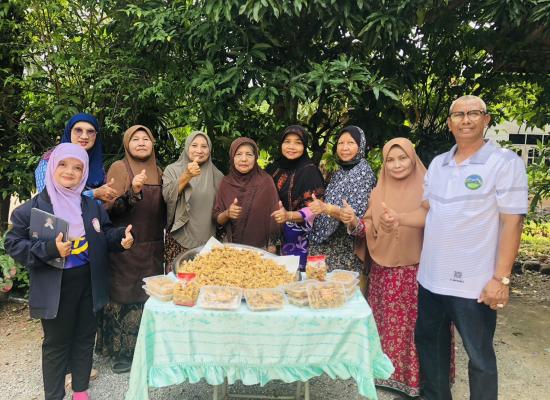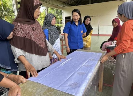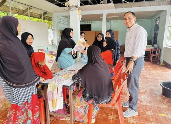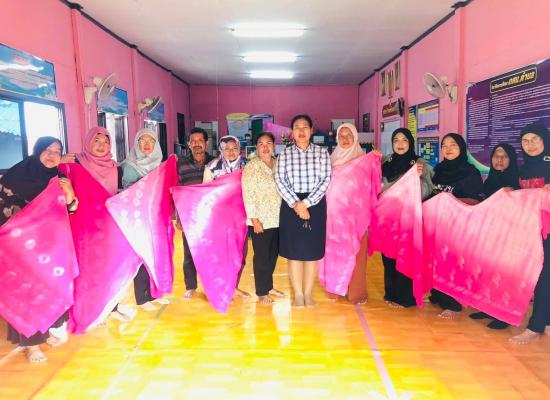 ศกร.ระดับตำบลบ้านควน เยี่ยมกลุ่มโครงการศูนย์ฝึกอาชีพชุมชน รูปแบบชั้นเรียนวิชาชีพ หลักสูตรผ้าพิมพ์เทียนมัดย้อมจากเปลือกไม้ยูคาลิปตัส