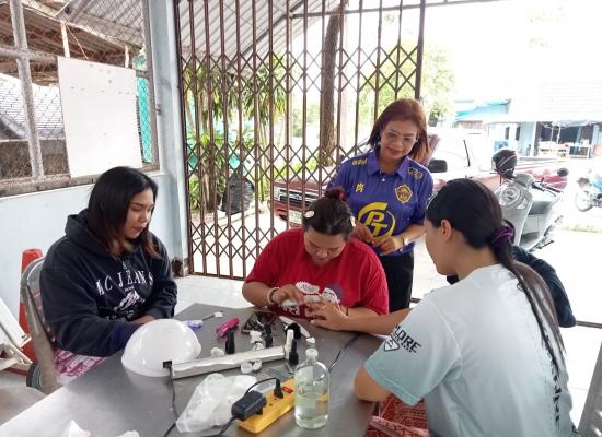 ศกร.ระดับตำบลคลองขุด เยี่ยมกลุ่มโครงการศูนย์ฝึกอาชีพชุมชน รูปแบบกลุ่มสนใจ หลักสูตรสีสันบนเล็บ