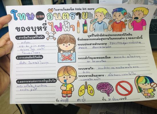 ศกร.ระดับตำบลปูยู จัดบอร์ดให้ความรู้เกี่ยวกับโทษและอันตรายของบุหรี่ไฟฟ้า