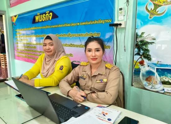 ศกร.ระดับตำบลบ้านควน เยี่ยมกลุ่มโครงการศูนย์ฝึกอาชีพชุมชน รูปแบบชั้นเรียนวิชาชีพ หลักสูตรผ้าพิมพ์เทียนมัดย้อมจากเปลือกไม้ยูคาลิปตัส