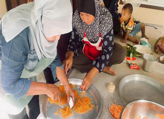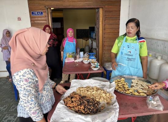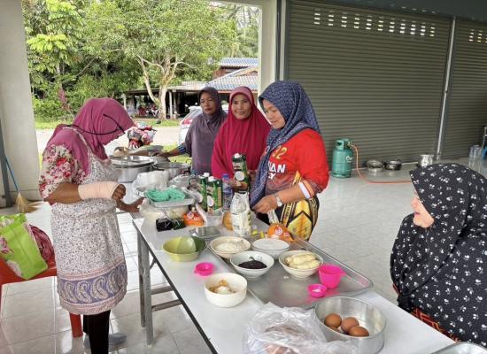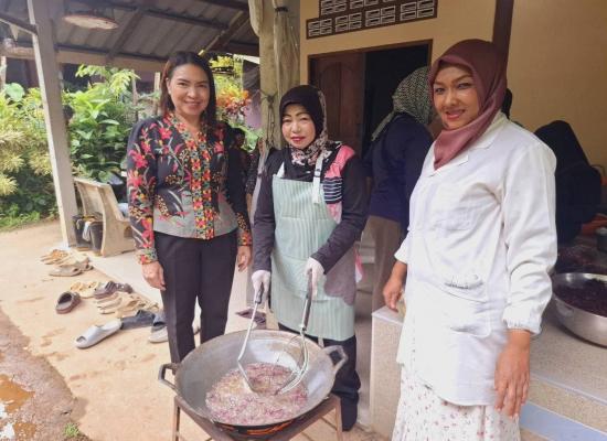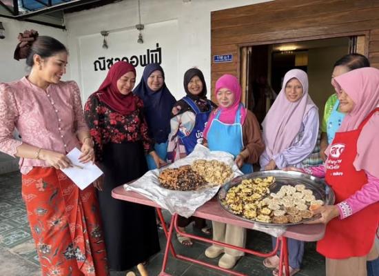ศกร.ระดับตำบลบ้านควน เยี่ยมกลุ่มจัดโครงการศูนย์ฝึกอาชีพชุมชน รูปแบบกลุ่มสนใจ หลักสูตร ข้าวเหนียวคอนโดหน้าแฟนซี