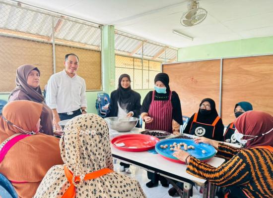 ศกร.ระดับตำบลเจ๊ะบิลัง เยี่ยมกลุ่มโครงการศูนย์ฝึกอาชีพชุมชน รูปแบบกลุ่มสนใจ หลักสูตรขนมปั้นสิบ