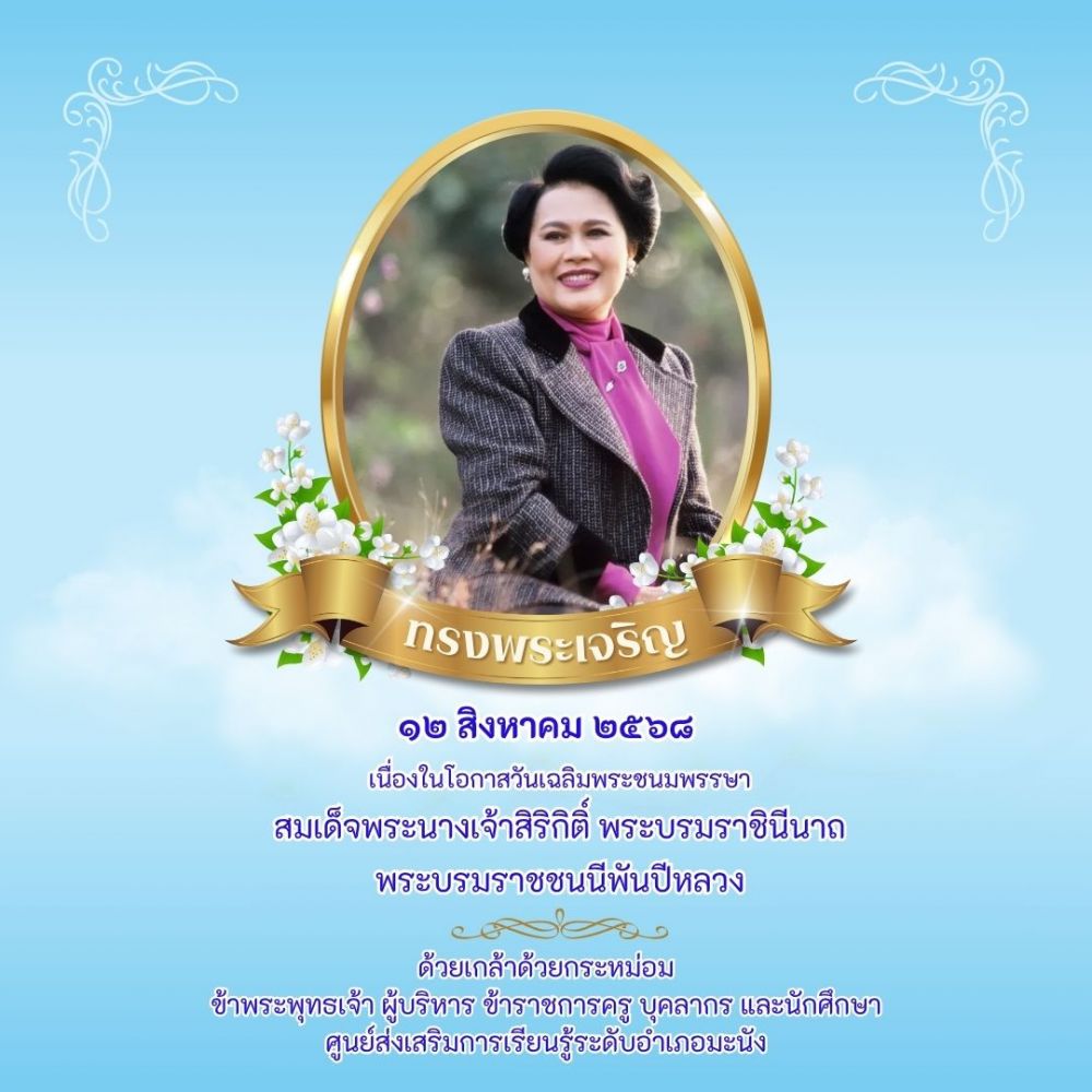 ห้องสมุดประชาชนอำเภอมะนัง ศูนย์ส่งเสริมการเรียนรู้ระดับอำเภอมะนัง จังหวัดสตูล ขอเชิญร่วมลงนามถวายพระพร เนื่องในโอกาสวันเฉลิมพระชนมพรรษาสมเด็จพระนางเจ้าสิริกิติ์ พระบรมราชินีนาถพระบรมราชชนนีพันปีหลวง วันที่ ๑๒ สิงหาคม ๒๕๖๘ ผ่านระบบออนไลน์