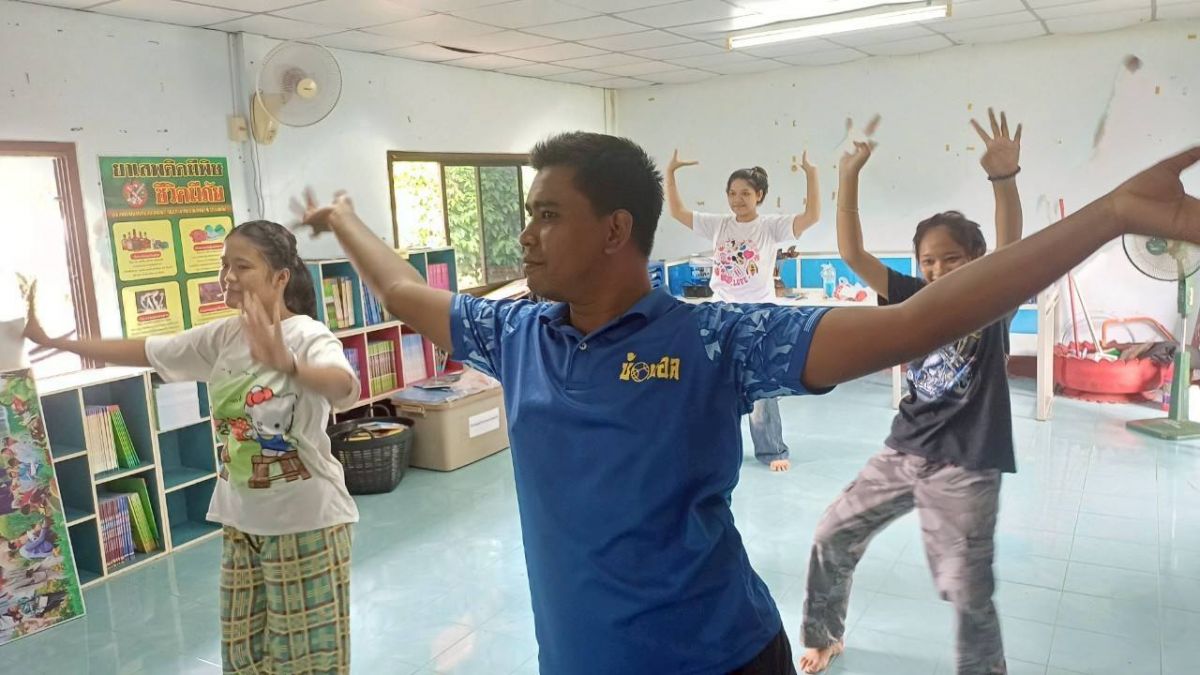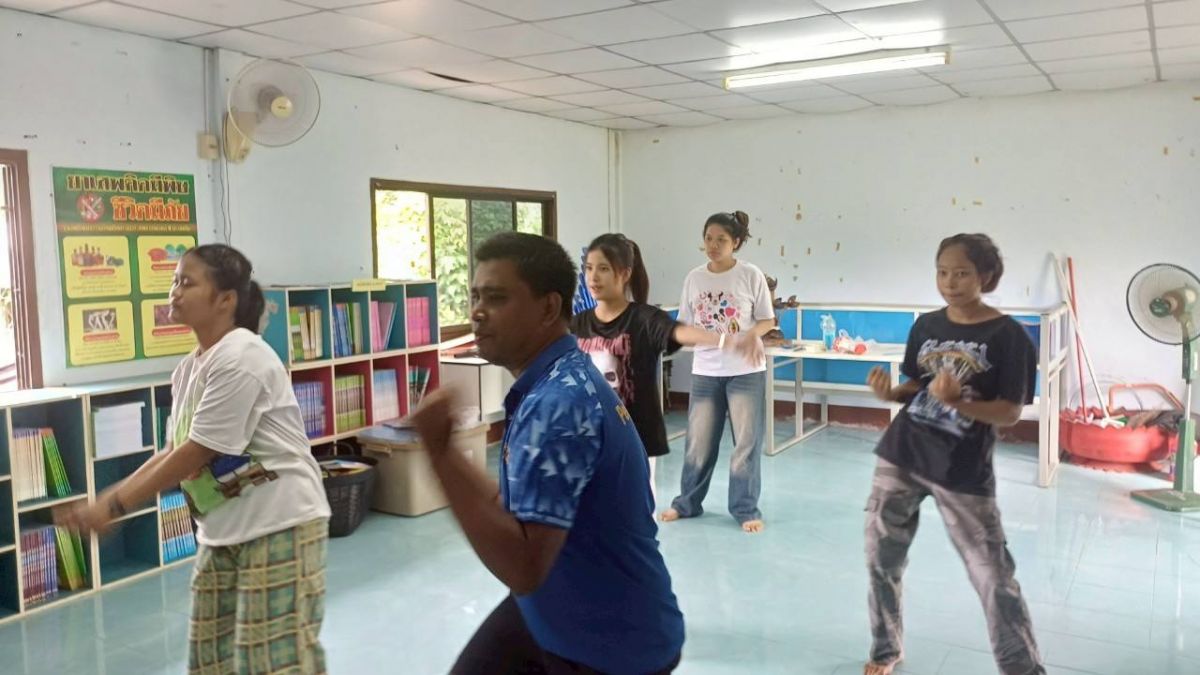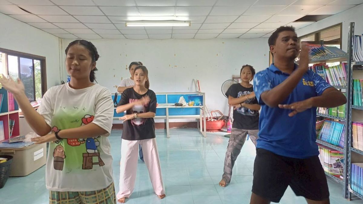 นายบุญนำ หมีนายะลา ผู้อำนวยการศูนย์ส่งเสริมการเรียนรู้ระดับอำเภอมะนัง มอบหมายให้นางสาวดวงกมล ประทุมมณี ดำเนินการฝึกซ้อมเต้น
