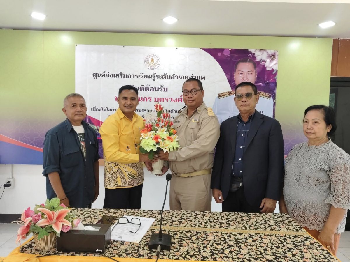 นายอาดำ ลิงาลาห์ ผู้อำนวยการสถานศึกษาศูนย์ส่งเสริมิการเรียนรู้ระดับอำเภอท่าแพ พร้อมบุคลากร สกร.ระดับอำเภอท่าแพ ร่วมต้อนรับข้าราชการใหม่ นายฐานกร บุตรวงค์ ตำแหน่งครูผู้ช่วย ณ สกร.ระดับอำเภอท่าแพ จังหวัดสตูล