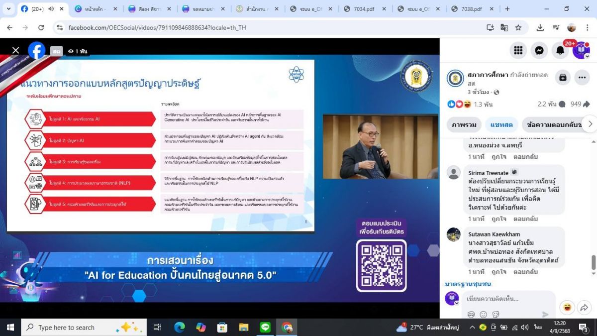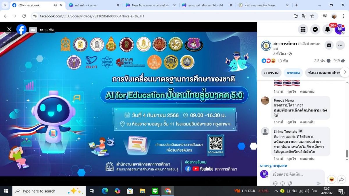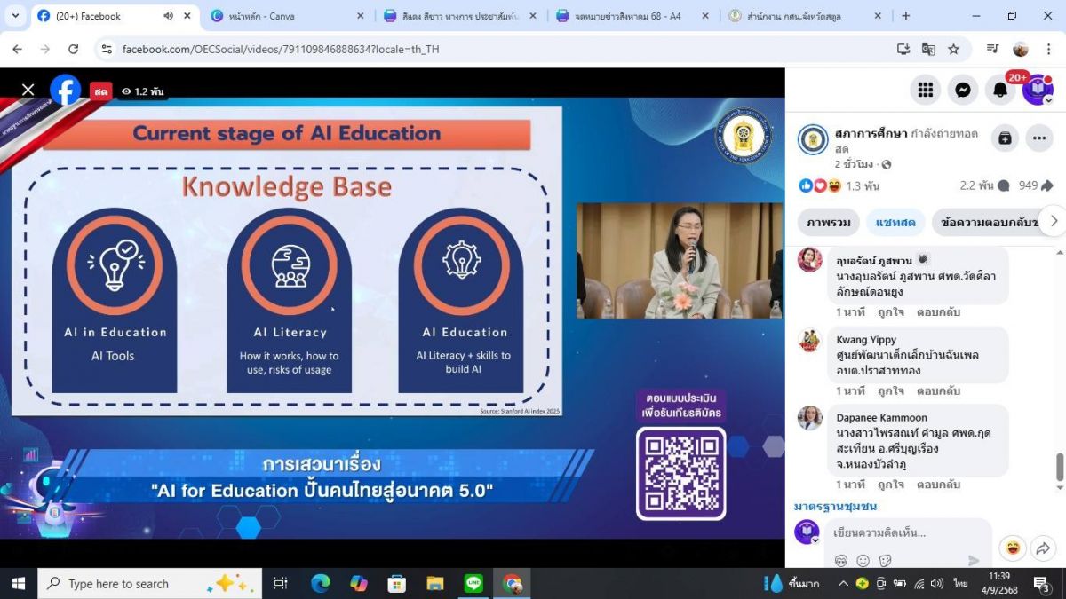 สกร.ระดับอำเภอมะนัง ร่วม รับชม LIVE ถ่ายทอดสดการสัมมนาวิชาการ การขับเคลื่อนมาตรฐานการศึกษาของชาติ Al for Education ปั้นคนไทยสู่อนาคต 5.0