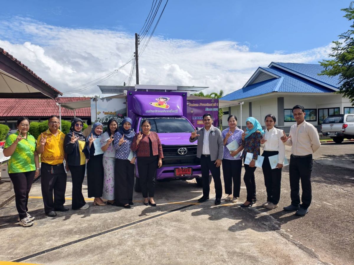บรรณารักษ์ ห้องสมุดประชาชนอำเภอมะนัง ร่วมประชุมคณะกรรมการตรวจรับพัสดุ และแนะนำวิธีการใช้รถส่งเสริมการอ่านเคลื่อนที่