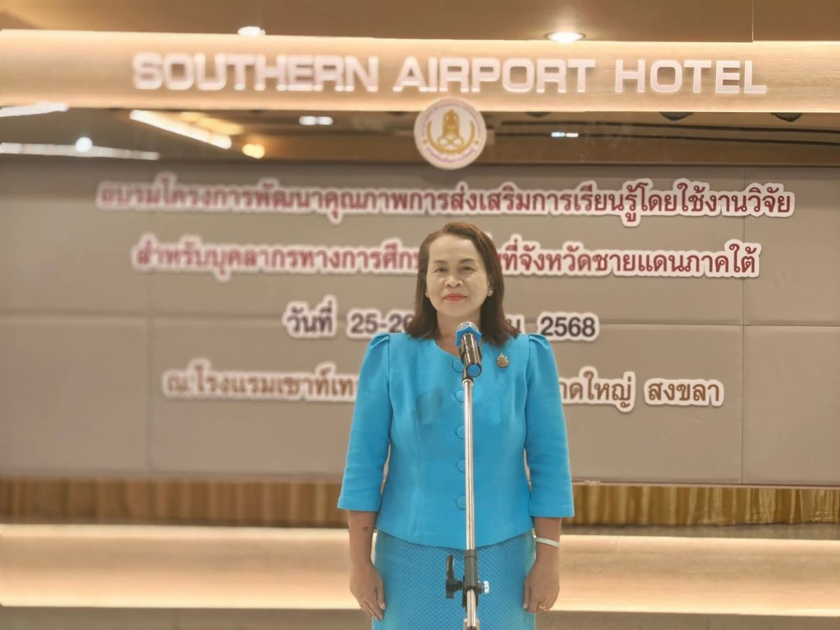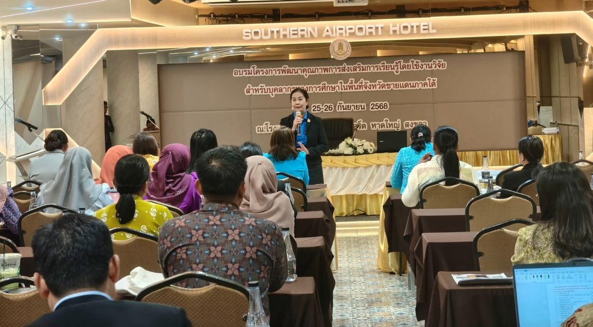 นายบุญนำ หมีนยะลา ผู้อำนวยการสถานศึกษาศูนย์ส่งเสริมการเรียนรู้ระดับอำเภอมะนัง ร่วมอบรมโครงการ “พัฒนาคุณภาพการส่งเสริมการเรียนรู้โดยใช้งานวิจัย สำหรับบุคลากรทางการศึกษาในพื้นที่จังหวัดชายแดนใต้” ระหว่างวันที่ 25–26 กันยายน 2568