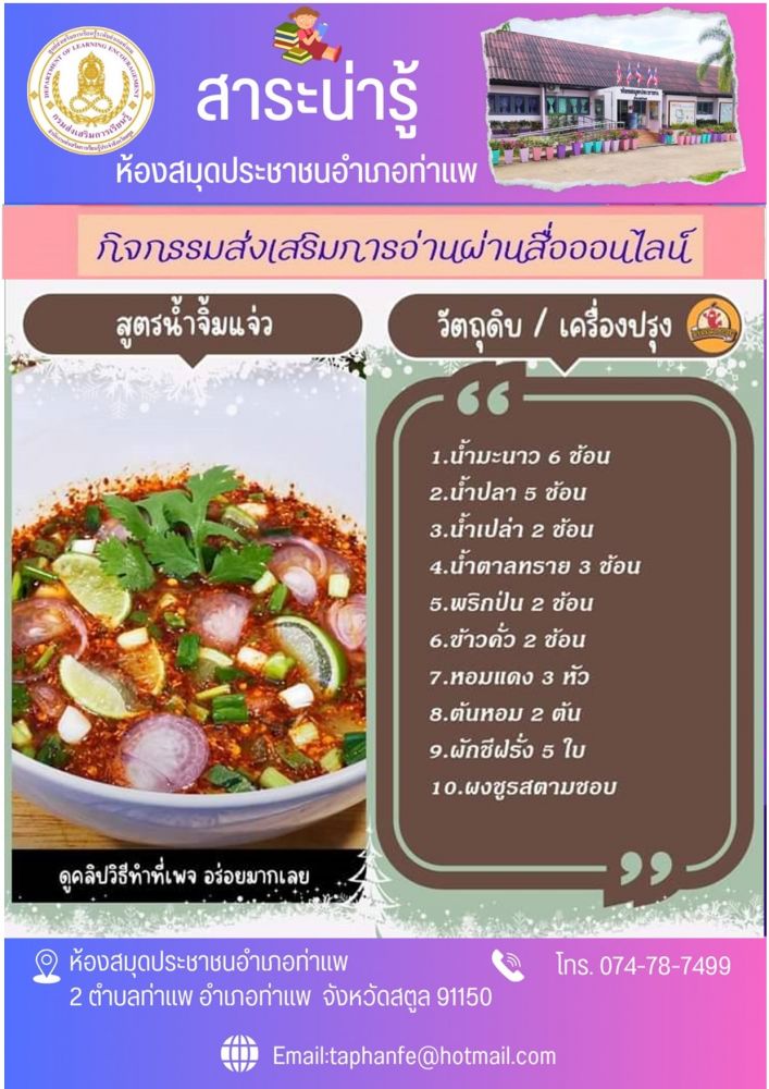 ส่งเสริมการอ่านผ่านสื่อออนไลน์ \"สูตรน้ำจิ้มแจ่ว\" การอ่าน เปิดประตูสู่ความรู้ที่ไม่สิ้นสุด