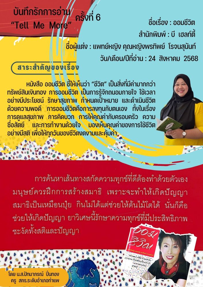 สกร.ระดับอำเภอท่าแพ ดำเนินการจัดกิจกรรม ส่งเสริมการวิเคราะห์ และการอ่านอย่างเป็นกระบวนการ โดยผู้บริหารและครูเป็นต้นแบบ ภายใต้กิจกรรมกิจกรรม ''''Tell me more" ประจำเดือนกันยายน 2568