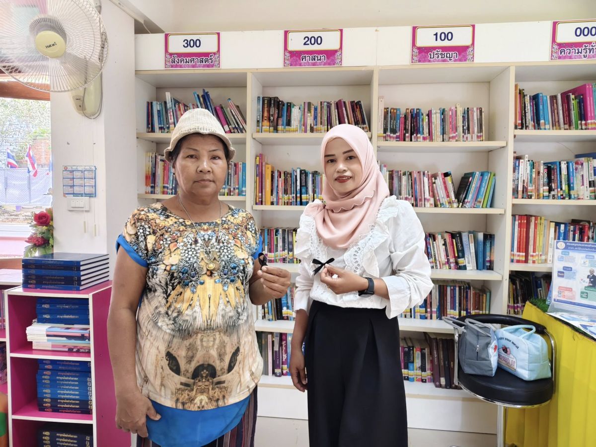 ห้องสมุดประชาชนอำเภอมะนัง ดำเนินการจัดทำเข็มกลัดโบว์สีดำเพื่อถวายความอาลัยแด่สมเด็จพระนางเจ้าสิริกิติ์ พระบรมราชินีนาถ พระบรมราชิชนนีพันปีหลวง