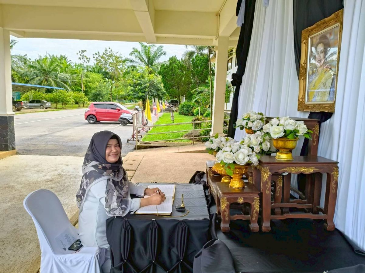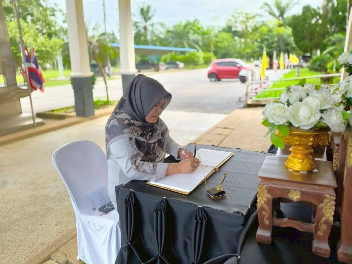 ครู ศูนย์ส่งเสริมการเรียนรู้ระดับอำเภอมะนัง ร่วมลงนามถวายพระพรชัยมงคล เพื่อถวายความอาลัยแด่สมเด็จพระนางเจ้าสิริกิติ์ พระบรมราชินีนาถ พระบรมราชชนนีพันปีหลวง