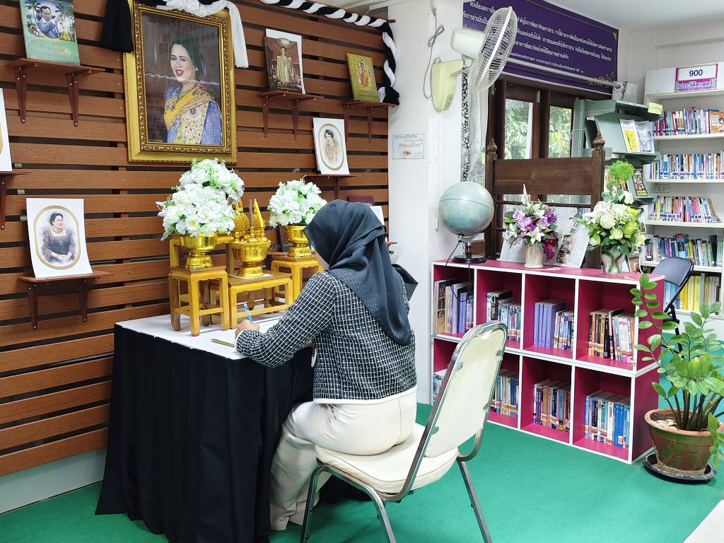 ห้องสมุดประชาชนอำเภอมะนัง จัดกิจกรรมลงนามถวายความอาลัย สมเด็จพระนางเจ้าสิริกิติ์ พระบรมราชินีนาถ พระบรมราชชนนีพันปีหลวง