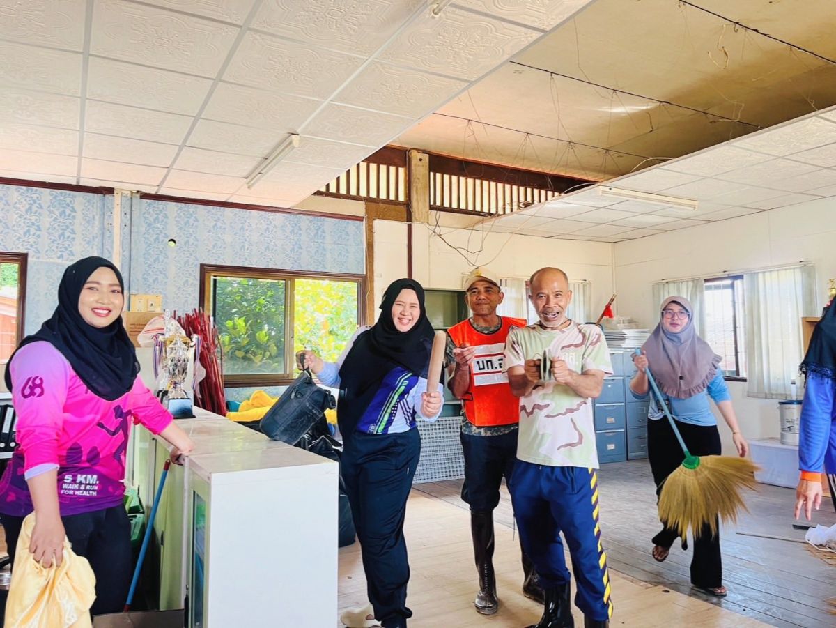 สกร.ระดับอำเภอควนโดน ศกร.ระดับตำบลย่านซื่อ ร่วมกันล้าง ทำความสะอาด ศกร.ระดับตำบล