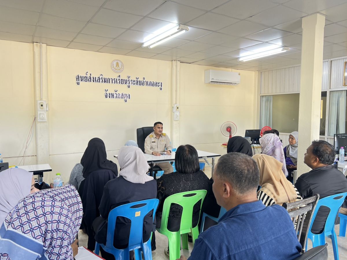 นายอาดำ ลิงาลาห์ ผู้อำนวยการสถานศึกษาศูนย์ส่งเสริมการเรียนรู้ระดับอำเภอท่าแพ รักษาการในตำแหน่ง ผู้อำนวยการสถานศึกษาศูนย์ส่งเสริมการเรียนรู้ระดับอำเภอละงู ดำเนินการประชุมครูและบุคลากร สกร.ระดับอำเภอละงู ครั้งที่ 9/2568 เพื่อมอบหมายนโยบายการดำเนินงาน และติดตามการดำเนินงานของบุคลากร สกร.ระดับอำเภอละงู ณ สกร.ระดับอำเภอละงู ตำบลกำแพง อำเภอละงู จังหวัดสตูล