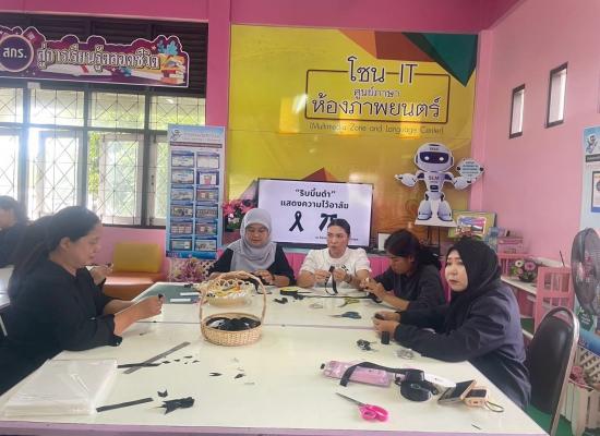 ศกร.ระดับตำบลตันหยงโป ร่วมจัดทำเข็มกลัดโบว์สีดำเพื่อถวายความอาลัยแด่สมเด็จพระนางเจ้าสิริกิติ์ พระบรมราชินีนาถ พระบรมราชิชนนีพันปีหลวง